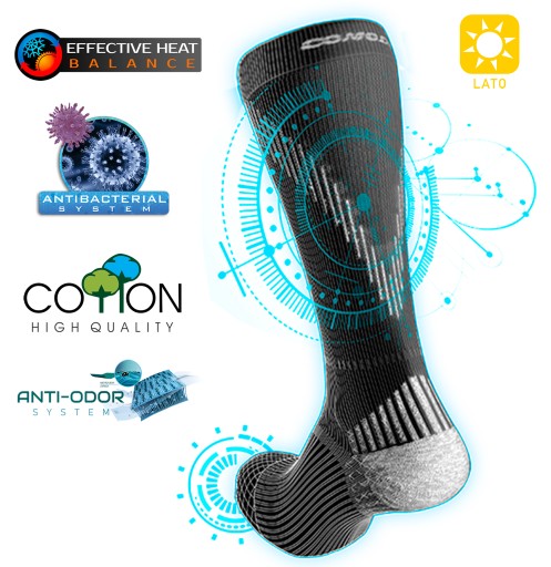 - strefa kontroli – opaski elastyczne dopasowują skarpetę do kształtu stopy.