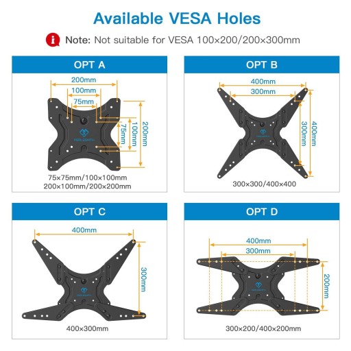 - Uniwersalna konstrukcja - uchwyt do telewizora pasuje do większości telewizorów od 26 do 55 cali i wadze do 39 kg. Zdejmowane wysuwane wsporniki tworzą różne kombinacje, uzyskując unikalne rozwiązanie dla większości telewizorów średniej wielkości, płyta czołowa zgodna ze standardem