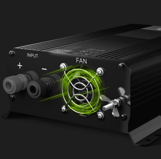 Z tyłu inwertera umiejscowiono wentylator zapewniający odpowiednie chłodzenie urządzenia.