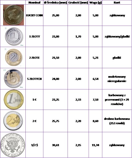 - Wielkością jest zbliżona do popularnych monet EUR, PLN, USD