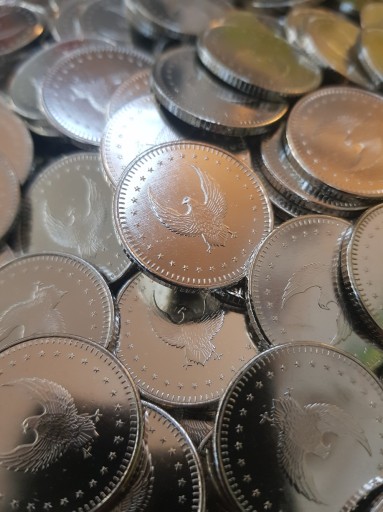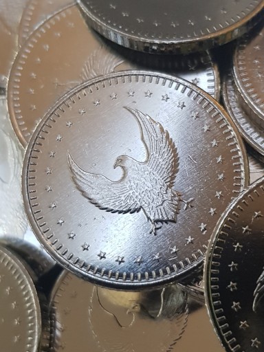 Moneta jest wykonana tak, aby wyglądała jak prawdziwa moneta pod względem wielkości, wagi i wyglądu. Z wybitym orłem i 30 gwiazdami po obu stronach. Jednak nie jest to prawdziwa moneta i nie służy do celów płatniczych. To nie są prawdziwe pieniądze.