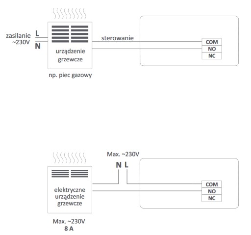 - Histereza: ±0,2°C / ±0,4°C / Tryb PWM