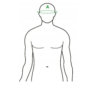 A - obwód głowy - mierzymy obwód głowy przez uszy.