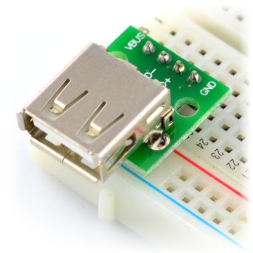 - 6 Złącze USB do płytki stykowej z wlutowanymi złączami.