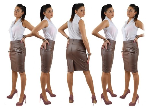 SPÓDNICE EKO SKÓRA Z 2 SUWAKAMI CAPPUCCINO r.50