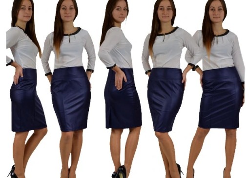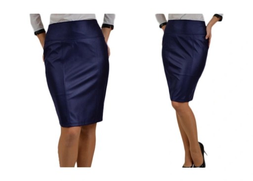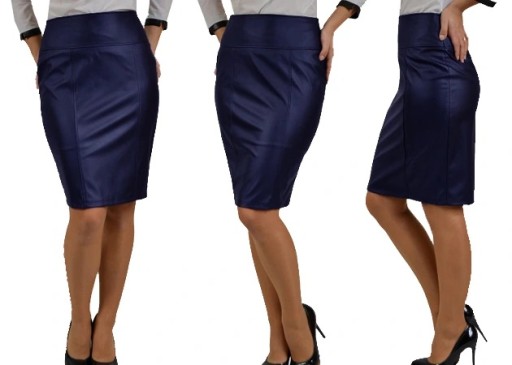 GŁADKA OŁÓWKOWA SPÓDNICA EKO SKÓRA GRANATOWA r.48