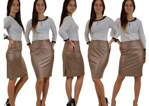 GŁADKA OŁÓWKOWA SPÓDNICA EKO SKÓRA CAPPUCCINO r.46