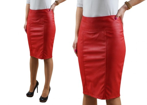 GŁADKA OŁÓWKOWA SPÓDNICA EKO SKÓRA CZERWONA r.46