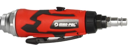 Szlifierka pneumatyczna marki MAR-POL, zasilana strumieniem sprężonego powietrza pod ciśnieniem.