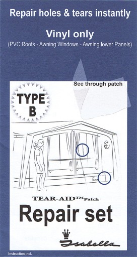 Materiał do naprawy wszystkich tkanin namiotowych z PVC np do okien, dolnych paneli przedsionka i do dachów z PVC