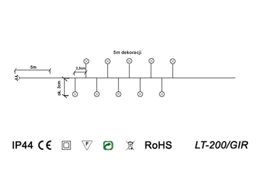 5m dekoracji na srebrnym przewodzie w 5 wariantach kolorystycznych.