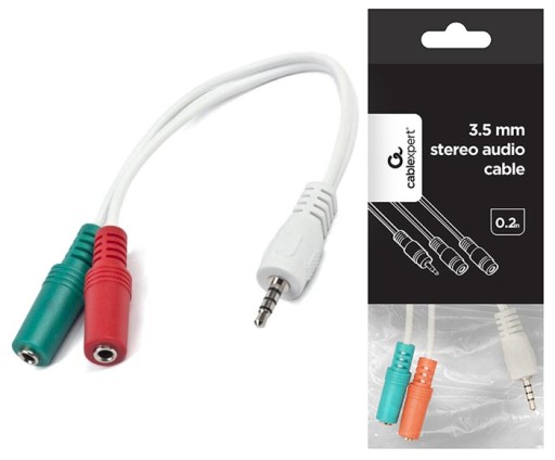 - Adapter audio z 3,5 mm 4-pinową wtyczką na dwa gniazda 3,5mm dla mikrofonu i słuchawek