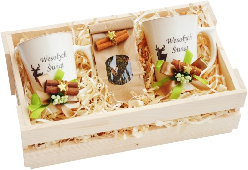 Piękny i praktyczny prezent na Święta Bożego Narodzenia - oryginalny zestaw dwóch porcelanowych kubków oraz pysznej herbaty - całość pięknie ozdobiona i zapakowana. Doskonały prezent pod choinkę dla rodziców, dziadków, siostry i szwagra.