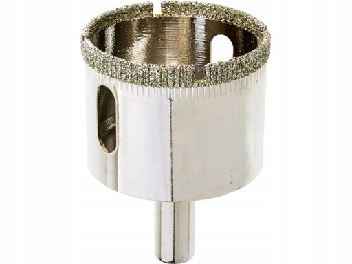 Otwornica z nasypem diamentowym 50 mm przeznaczona jest do gresu, kamienia, płytek, glazury oraz innych twardych materiałów. Charakteryzuje się wytrzymałością dzięki powłoce z pyłu diamentowego. W otwornicy wykonano podłużne otwory do usuwania urobku.