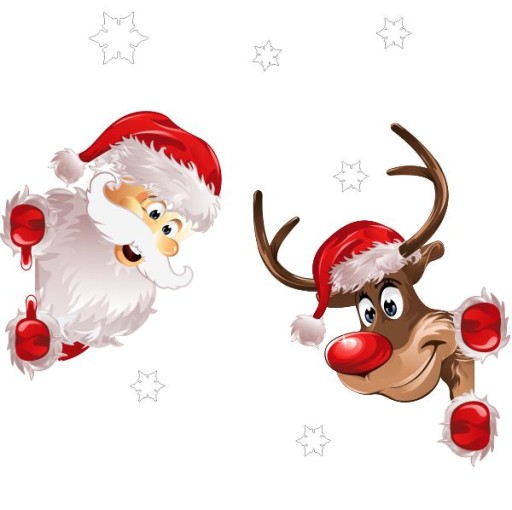 Mikołaj z reniferem - śmieszna naklejka świąteczna