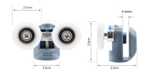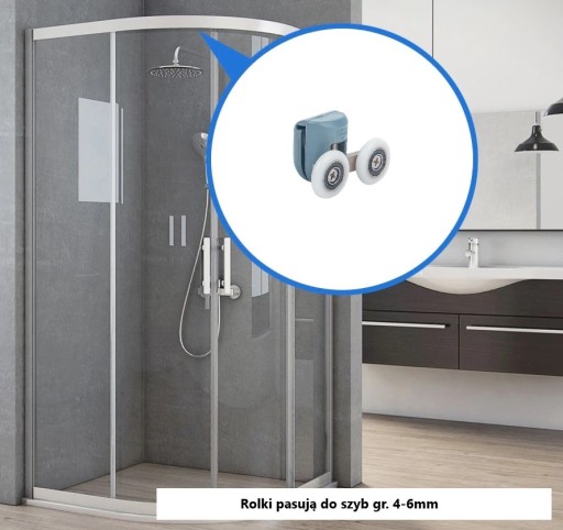 - zastosowanie - rolki pasują do kabin prysznicowych w których zastosowano taki system m.in.:Cersanit, Deante, Metalhurt, Aquasan, Armazi, Koło, Durasan, Sanplast, Imperial, Kabi, Savana, Maxispa i wielu innych