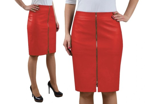 OŁÓWKOWA SPÓDNICA SKÓRZANA ZAMEK CZERWONA r.48