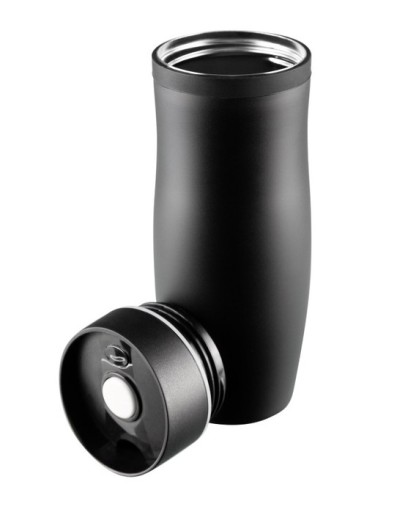 Plastikowa pokrywka z gwintem i uszczelką zapewnia szczelne zamknięcie. Pokrywka posiada wygodny przycisk, który umożliwia kliknięciem jednego palca otwarcie i zamknięcie kubka.