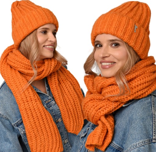 Теплый набор женский шляпа + шарф на зиму польского апельсина A7