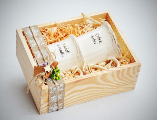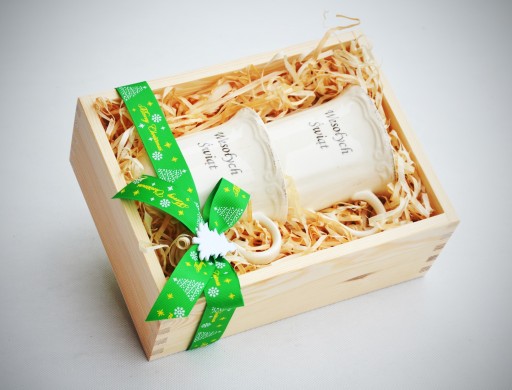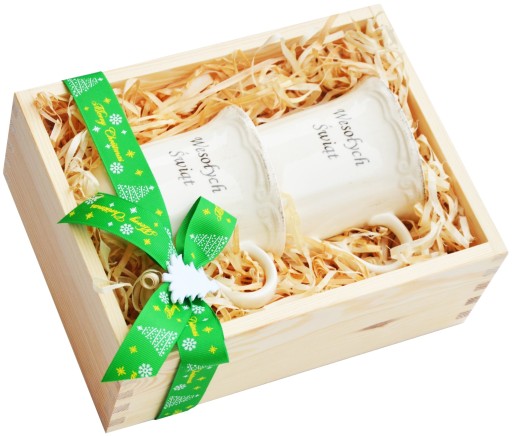 Piękny i praktyczny prezent na Święta Bożego Narodzenia - ZESTAW PORCELANOWYCH KUBKÓW w drewnianej, eleganckiej skrzynce - całość pięknie ozdobiona i zapakowana. Doskonały prezent pod choinkę dla najbliższych.