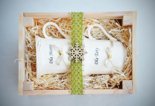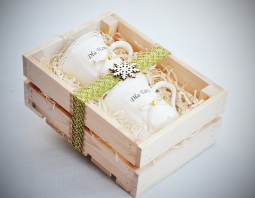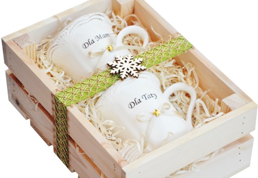 Piękny i praktyczny prezent na Święta Bożego Narodzenia - ZESTAW PORCELANOWYCH KUBKÓW w drewnianej, eleganckiej skrzynce - całość pięknie ozdobiona i zapakowana. Doskonały prezent pod choinkę dla najbliższych.