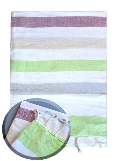 Wysokiej jakości pareo wykonane ze 100% ręcznie tkanej bawełny. Materiał jest lekki, przewiewny i ładnie się układa. Produkt może służyć jako pareo, ręcznik, narzutka lub chusta. Piękne pastelowe kolory i brzegi wykończone frędzlami są hitem tegorocznych wakacji.