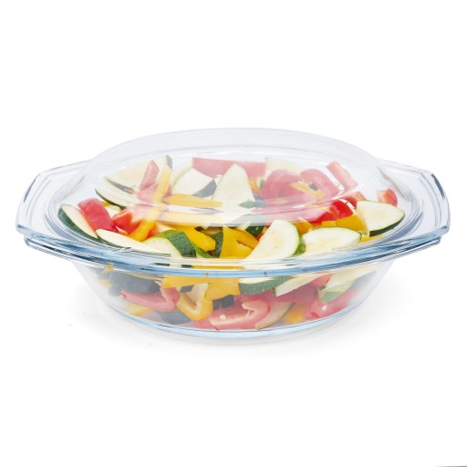 Naczynie żaroodporne owalne z pokrywą Termisil 2,9 l wykonane jest z wysokiej jakości szkła boro-krzemowego. To oznacza dużą odporność na uszkodzenia czy wysokie i zmienne temperatury (-50 do +500 stopni C). Dzięki pokrywce potrawy pozostają aromatyczne i soczyste. Przezroczysta forma brytfanny pozwala stale kontrolować proces pieczenia. Dwa uchwyty zapewniają bezpieczne wyjmowanie naczynia z pieca. Można je myć w zmywarce i używać w mikrofalówce. Szkło borokrzemowe charakteryzuje się wysoką wytrzymałością. Nie uszkodzi go szok termiczny. Jest też odporne na matowienie, a więc długo pozostanie krystaliczne.