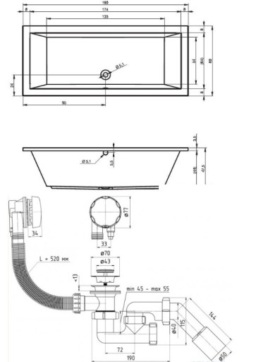 Wanna prostokątna Lusso 190x80 marki Riho + NÓŻKI + SYFON + ZAGŁÓWEK