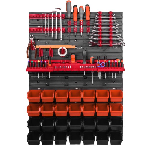 Pomimo, że tablice, uchwyty i pojemniki są plastikowe świetnie sprawdzą się w profesjonalnym warsztacie ale i w przydomowym garażu.