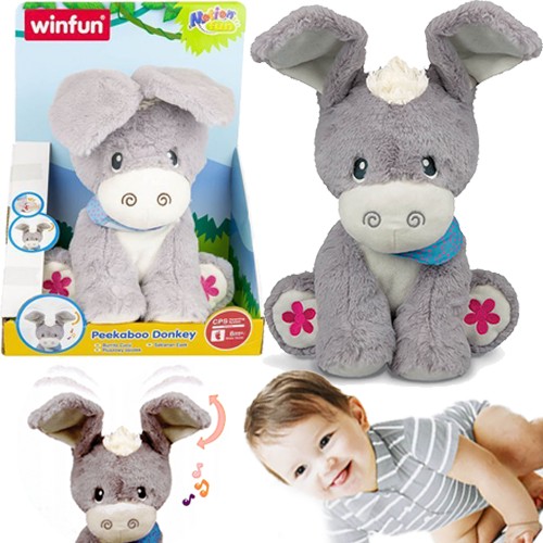 Osiołek A ku Ku to miękka, przyjemna w dotyku, interaktywna przytulanka.