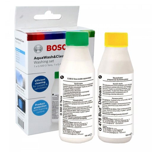 - Detergent: zapewnia skuteczne czyszczenie dywanów i tapicerki z odkurzaczem piorącym Bosch AquaWash&Clean