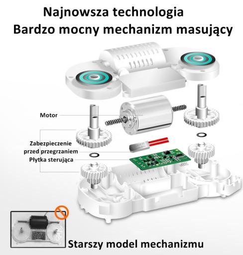 Urządzenie kompleksowo masuje kark, szyję, ramiona, plecy, lędźwie i nogi.