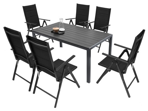 Konstrukcję stołu oraz krzeseł stanowi wysokiej jakości aluminium, malowane metodą proszkową. W oferowanym zestawie blat stołu wykonany jest z nieabsorbujących wody desek kompozytowych WPC, używanych między innymi do produkcji nowoczesnych systemów tarasowych i elewacji. Najważniejszym elementem konstrukcyjnym stołu są 4 profile aluminiowe w kształcie litery „U”. Ich zastosowanie sprawia, że po zmontowaniu całości stół jest wyjątkowo stabilny! Takie rozwiązanie pozwoliło na uzyskanie wolnej przestrzeni pod stołem i uniknąć niepotrzebnych dodatkowych konstrukcji przeszkadzających w wygodnym korzystaniu z mebli.