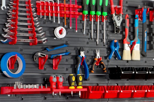 Tablica narzędziowa ORDERLINE do zawieszenia na ścianie, uniwersalna i przydatna w każdym garażu czy warsztacie. W komplecie tablice montażowe o łącznych wymiarach 230 cm na 78 cm, 109 pojemników, zestaw praktycznych uchwytów i półek do narzędzi. Łatwy montaż pojemników na tablicy pozwala na ich dowolne przemieszczanie w zależności od potrzeb. W każdej chwili można też pojemnik zdjąć, by uzyskać dostęp do zawartości.