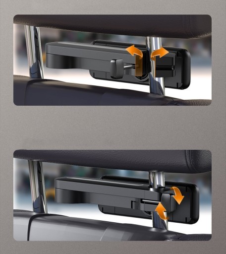 Uchwyt jest składany, więc kiedy z niego nie korzystasz może zostać złożony i zajmuje wtedy minimalną ilość miejsca za zagłówkiem.