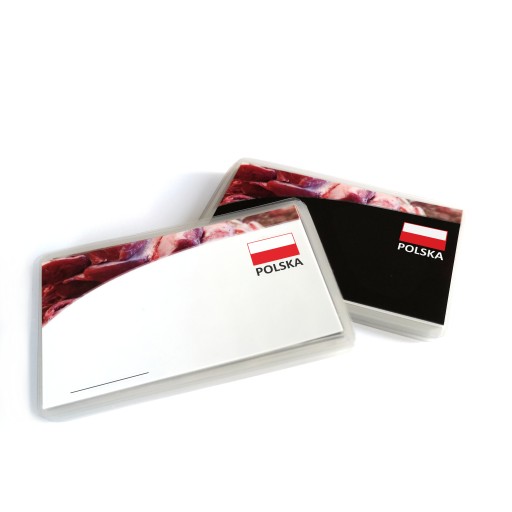 - Etykiety cenowe z flagą do oznaczenia z jakiego kraju pochodzi mięso.
