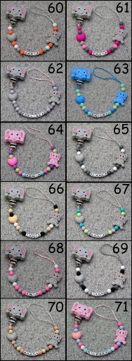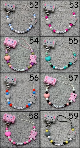 - metalowego klipsa z SILIKONOWĄ ozdobą w kształcie misia lub słonika, nie niszczącego ubrań