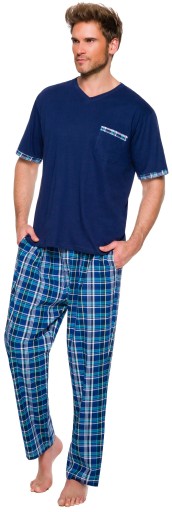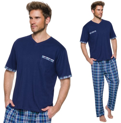 BAWEŁNIANA PIŻAMA MĘSKA - SPODNIE W KRATKĘ