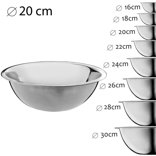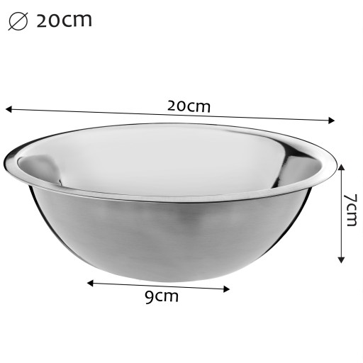 КУХОННАЯ ЧАША 20 СМ НЕРЖАВЕЮЩАЯ СТАЛЬ КРУГЛАЯ ДЛЯ ПРИГОТОВЛЕНИЯ САЛАТОВ