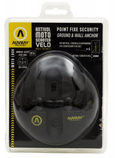 - Kotwa mocująca Auvray to idealne rozwiązanie do przypinania jednośladów w garażach, piwnicach i czy na parkingach. Przy pomocy akcesoriów montażowych, które załączone są w zestawie kotwę można zamontować na podłodze lub na ścianie. Wystarczy przypiąć motocykl łańcuchem lub inną blokadą do kotwy, tym samym zapewniamy bezpieczeństwo przed kradzieżą pojazdu.