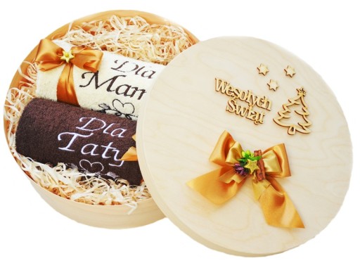 Piękny i praktyczny prezent na Święta Bożego Narodzenia - ręczniki z Twoim haftem, całość pięknie ozdobiona i zapakowana w oryginalnym drewnianym pudełku. Doskonały prezent pod choinkę dla rodziców, dziadków, rodzeństwa, znajomych.