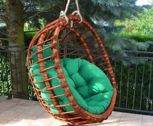 Huśtawki są lakierowane dzięki czemu wiklina jest bardziej wytrzymała podczas użytkowania.