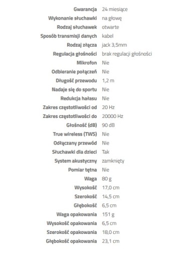 - Zakres częstotliwości: 20 - 20 000 Hz