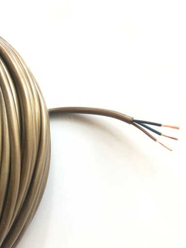Przewód w kolorze starego mosiądzu służący do elektryfikacji lamp i żyrandoli.Giętki(linka).Przewód dekoracyjny, nie oznakowany napisami .Przewód sprzedawany w metrach.Przy zakupie więcej niż jednego metra nie tniemy przewodu.