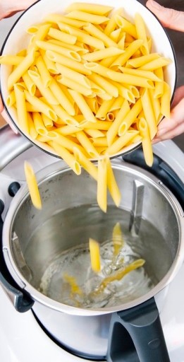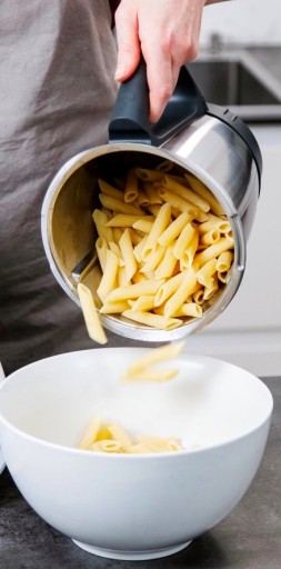 ✓ Umożliwia gotowanie dużych porcji makaronu, ziemniaków lub kiełbasek w naczyniu miksującym