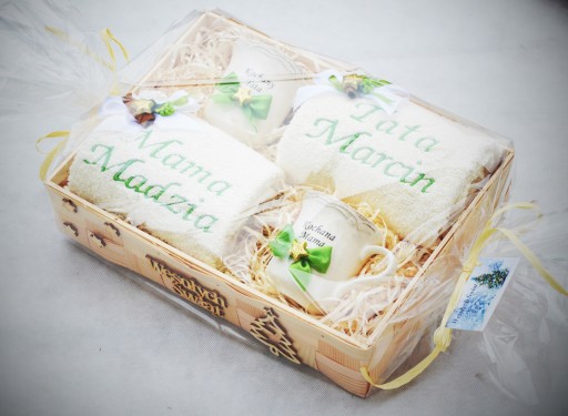 Piękny i praktyczny prezent na Święta Bożego Narodzenia - ręczniki z Twoim haftem, porcelanowe kubki, a całość pięknie ozdobiona i zapakowana. Doskonały prezent pod choinkę dla rodziców, dziadków, rodzeństwa, znajomych.