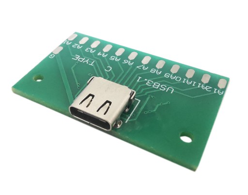Gniazdo USB typu C 3.1 z płytką do przylutowania przewodów. Płytka posiada otwory mocujące.