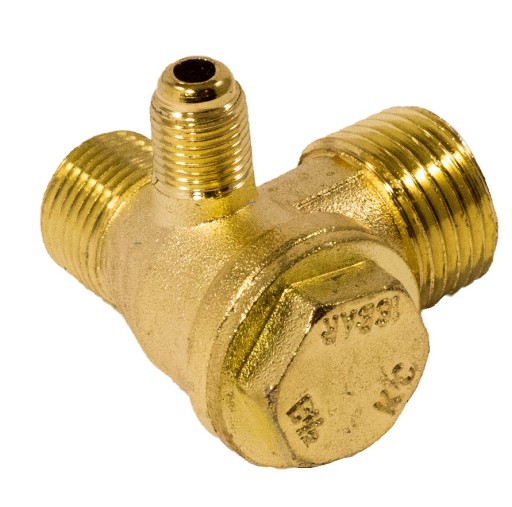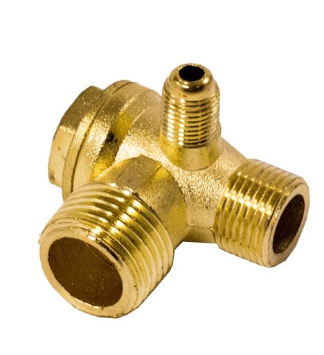 Profesjonalny zawór zwrotny z gwintami 1/2" x 3/8" znajdujący zastosowanie w kompresorach. Zabezpiecza przed cofaniem się z butli wcześniej wtłoczonego powietrza. Model ten wyposażony jest w wyjście odprężnika, które należy podłączyć pod przełącznik. Jeśli Twój kompresor nie jest wyposażony w odprężnik, należy zaślepić wyjście.