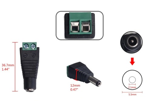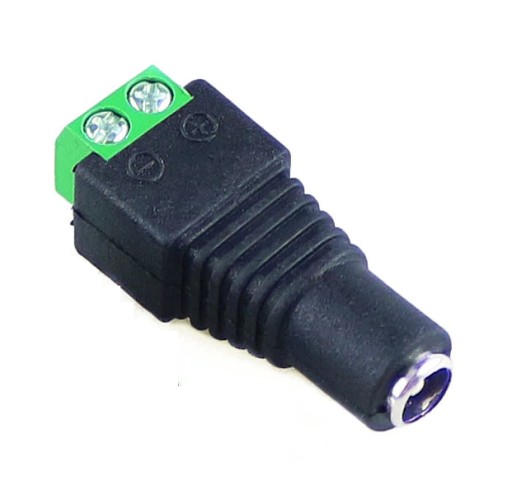 Gniazdo 5.5/2.5 mm służy do łatwego podłączenia taśmy LED z zasilaczem. Za pomocą śrubokręta należy dokręcić 2 śrubki zaciskowe na przewody.