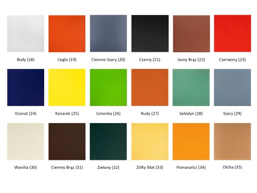 Szeroka paleta zawierająca 35 kolorów oraz 3 rodzaje materiału: gniot, skaj i eko-skóra, pozwolą na dobranie odpowiedniej kolorystyki do swoich potrzeb.